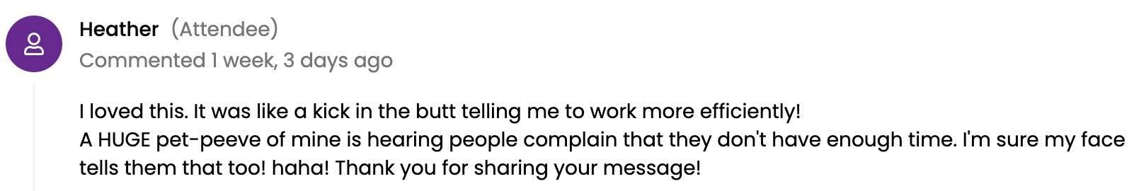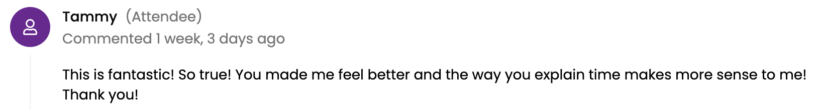 Each speaker will be live in the chat to answer your questions at a designated time while their session is available to watch. Plus daily live panels offer even more chances to engage and get clarity on the topics that matter to you.