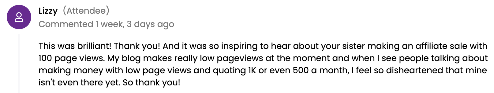 The Blogger Breakthrough Summit is focused on delivering real, actionable value — not endless sales pitches. Speakers are only allowed a brief mention of their offer (which is often a free offer) at the very end of their session, and the rest of the time is dedicated to providing you with strategies you can use right away.